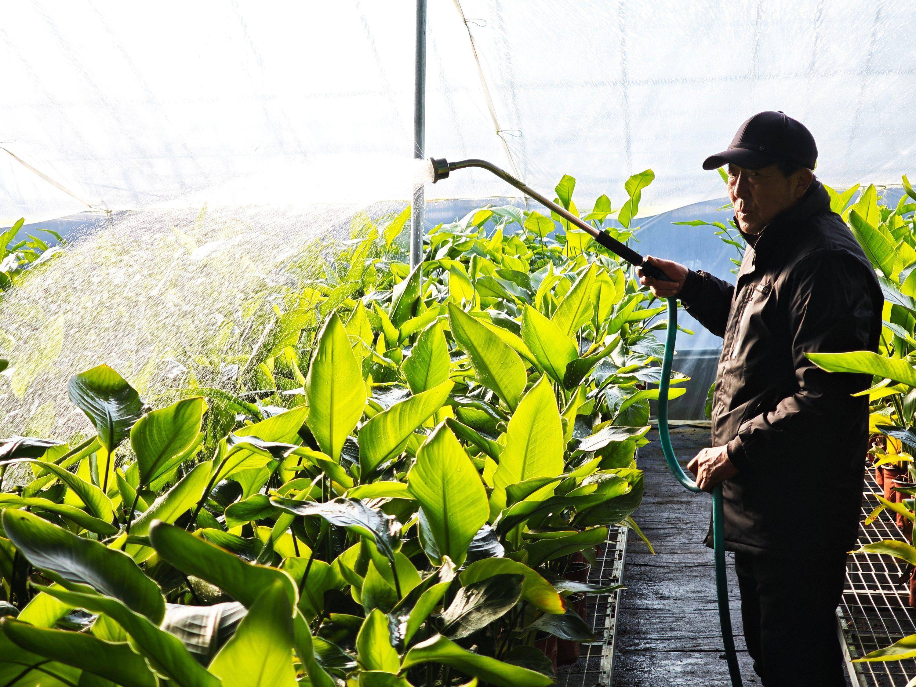据了解,天堂鸟喜温喜湿,对于光照、水和温度要求较高。为保障花卉品质,基地采用标准化种植管理模式,配备集温度控制、自动通风为一体的智能温室系统,保障花卉生长通风透光条件,实现花卉精细化管护。种植基地还搭建了自己的小型花卉销售基地和花卉运输系统,形成了集花卉种植、盆栽组合、销售于一体的产业链。