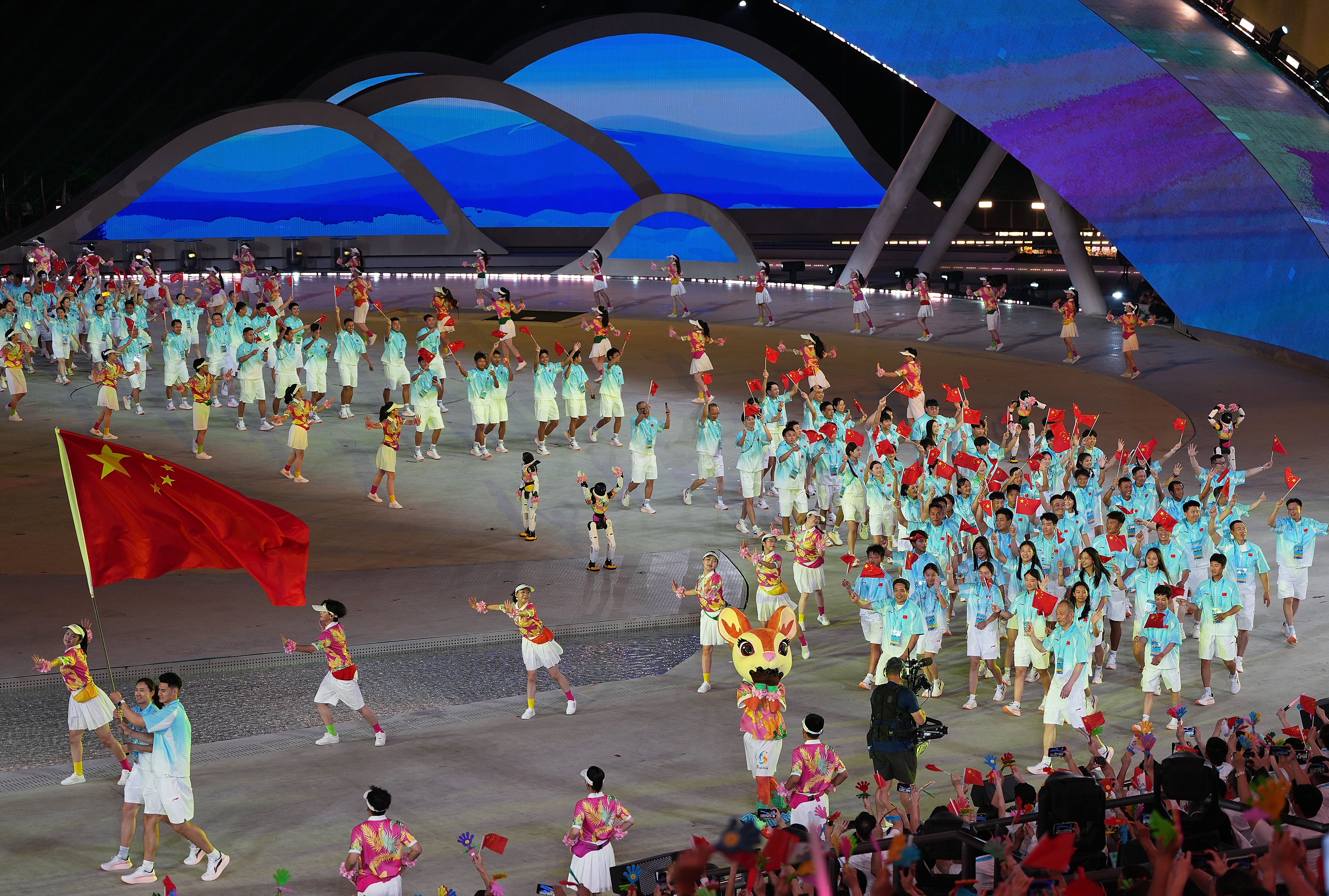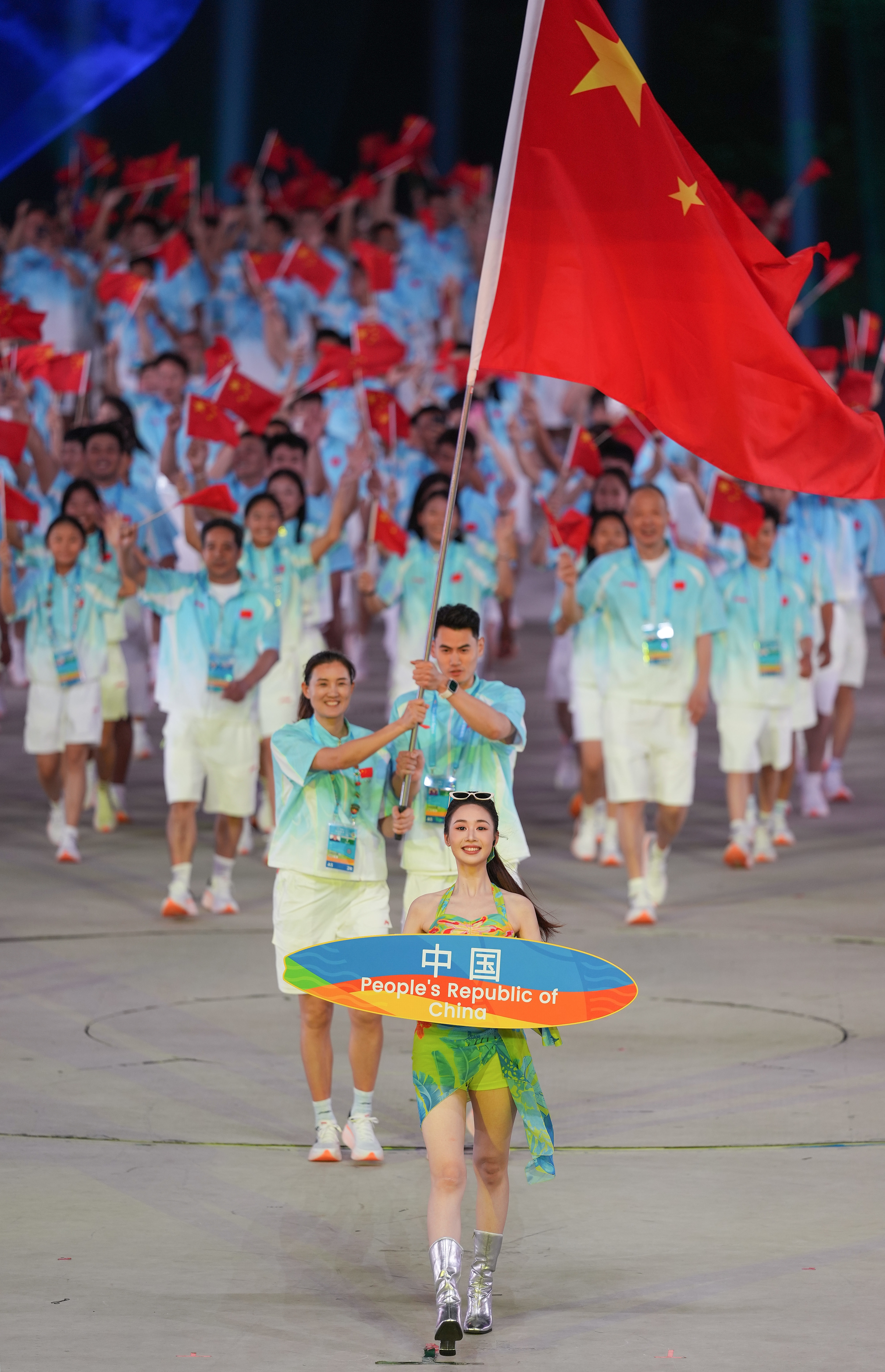 4月22日,中国体育代表团在开幕式上入场。新华社记者 胥冰洁 摄