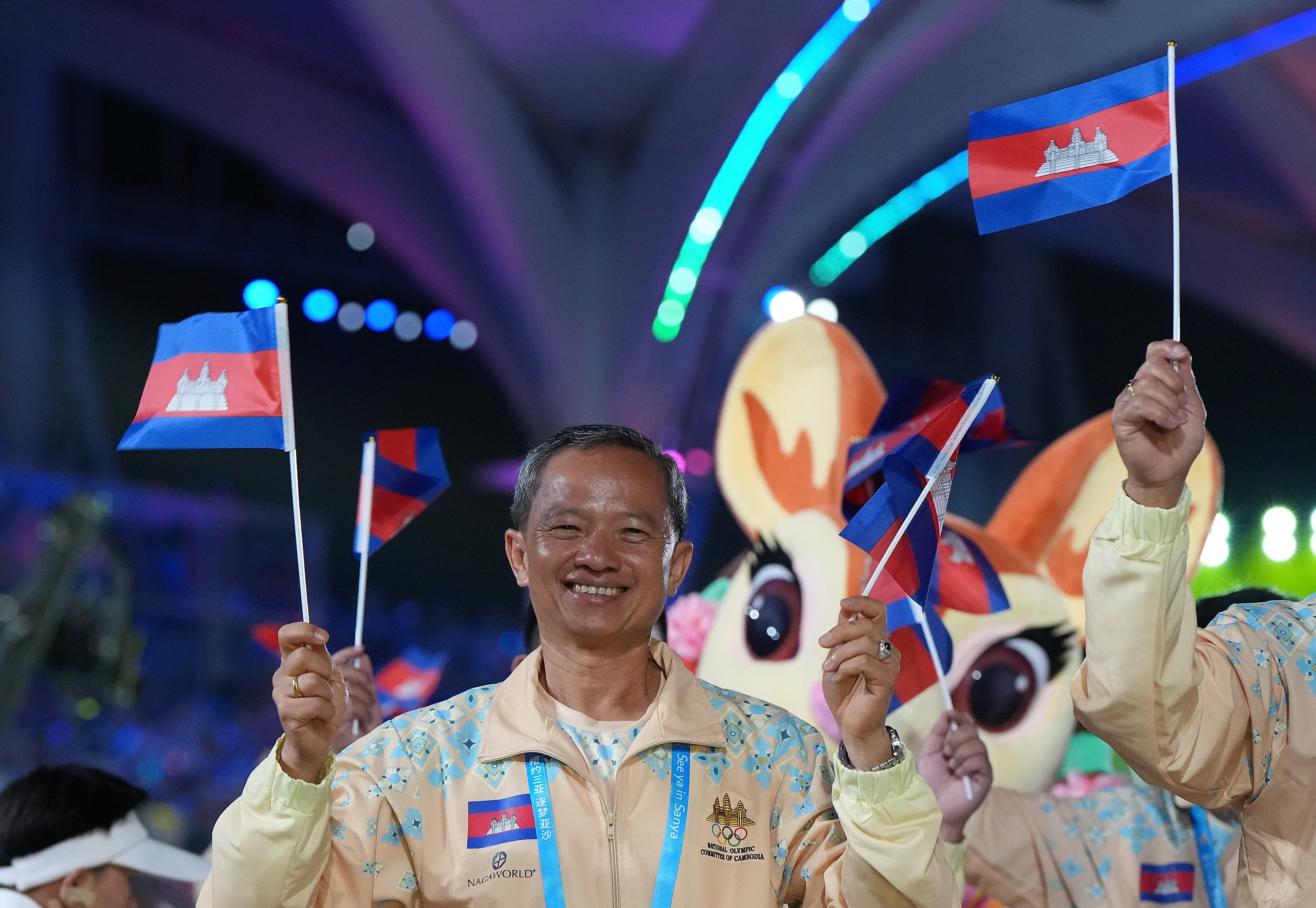 4月22日,柬埔寨体育代表团成员在开幕式上。新华社记者 李博 摄