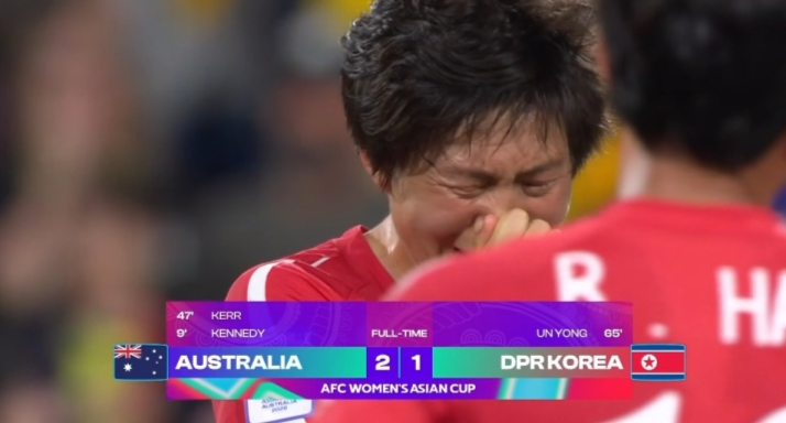 赛后,朝鲜女足球员茫然地站在场上,多人情绪崩溃、流下伤心却又不甘的泪水。主帅李成镐则失望坐在替补席,一言不发。确实朝鲜女足如此遗憾可以理解,毕竟这场比赛她们的表现,显然要比东道主澳大利亚女足要好得多。