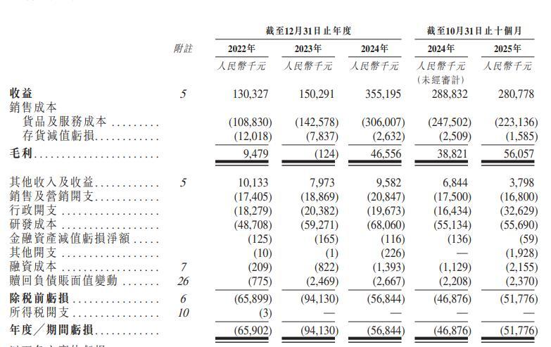 从财务数据来看,公司亏损幅度居高不下,且收窄速度缓慢:2023年净亏损达到9413万元峰值,2024年借助营收爆发式增长减亏至5684.4万元,2025年前十月亏损5177.6万元,连续四年大额亏损,始终未能实现盈亏平衡。