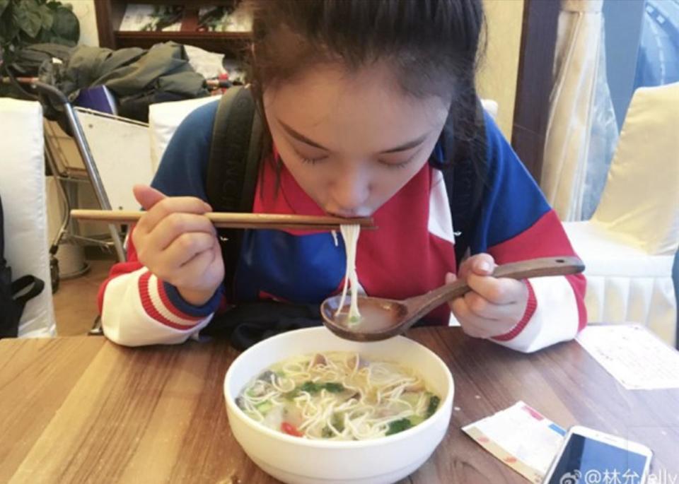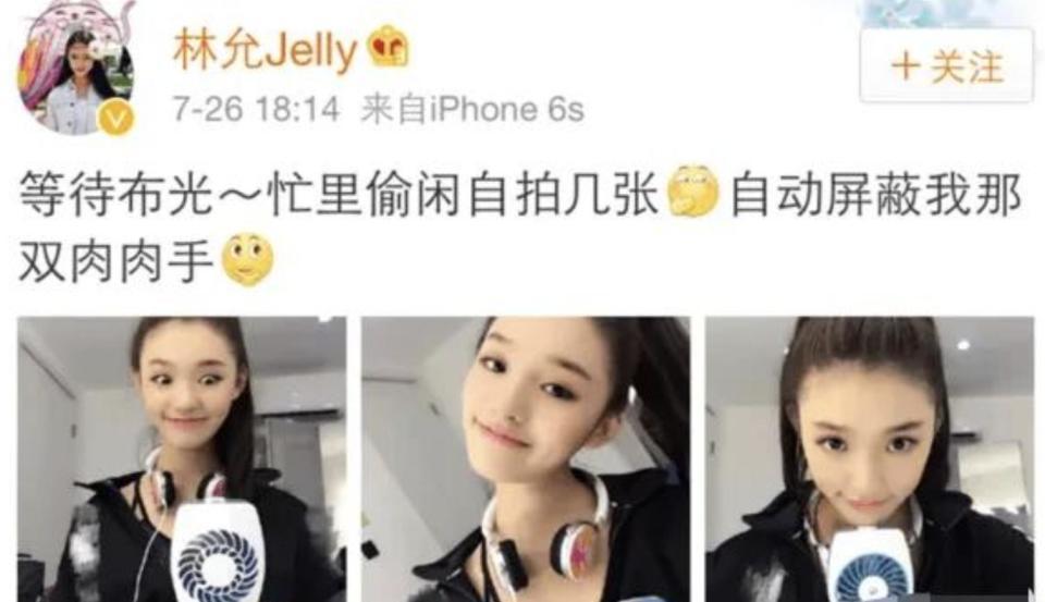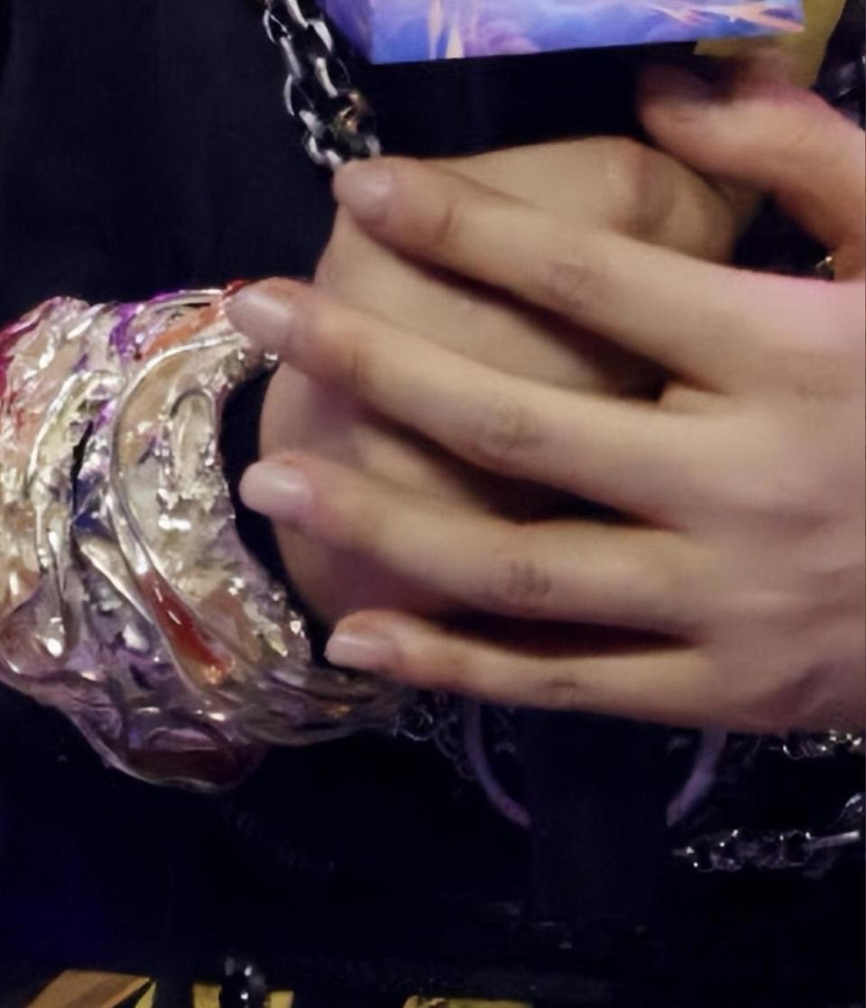 长了一张巴掌小脸,身材又高又瘦的林允给人错觉她应该有一双修长的双手,但其实林允也是个小肉手。