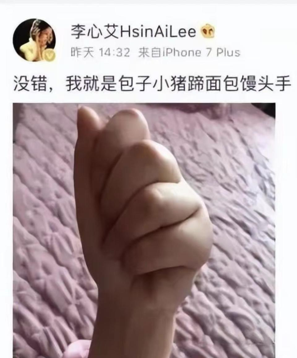 李心艾特地发文回应她的手天生就是这样,还自我调侃长了一双包子猪蹄面包馒头手。